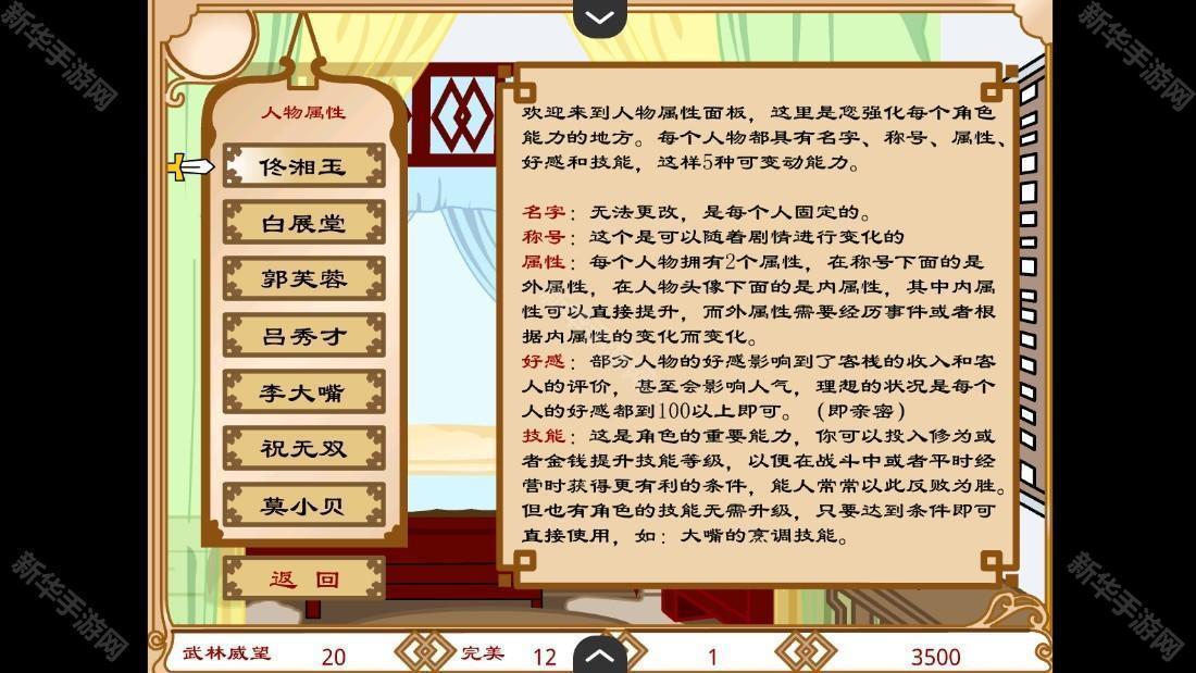 1.根据赛事的特点,结合客栈的利益和武林世界的道德,做出适当的选择,争取最好的结果和奖励。