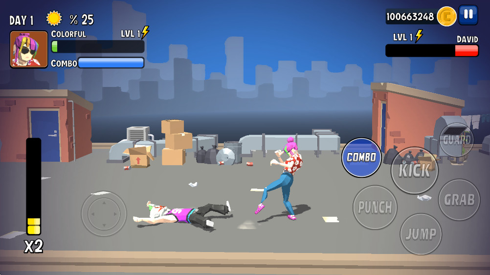 2、战斗永无止境。老板挑战和帮派野兽等待着。打败帮派和老板以结束不公正。
