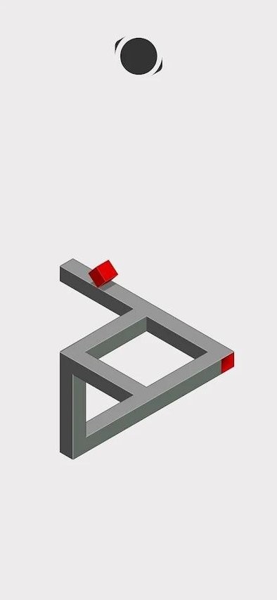 2、玩家需要在各种视觉错觉中寻找正确的路径,让红色方块能够顺利到达指定位置。
