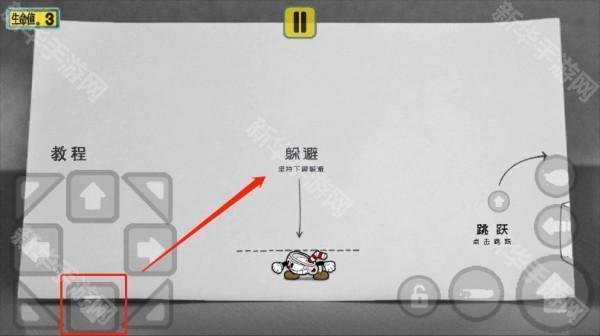 1、按住图示向下的按钮可以进行躲避