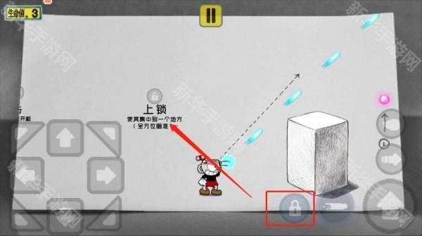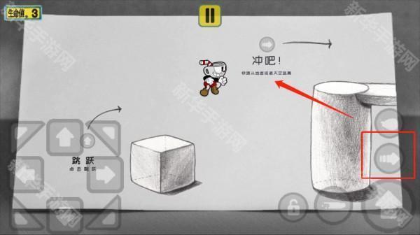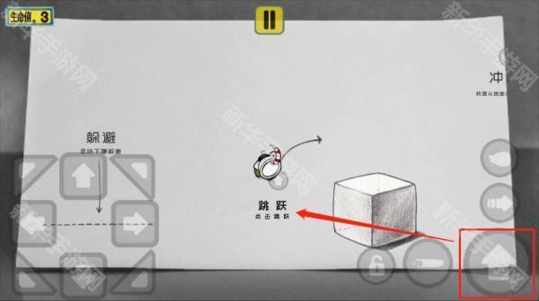 2、按住右侧上键即可进行跳跃