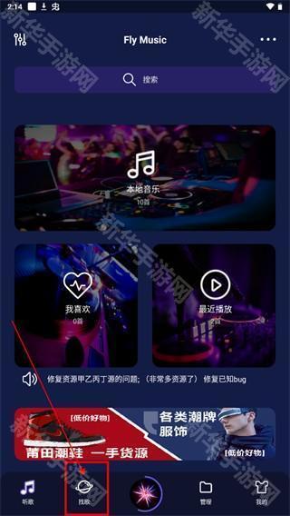 1、下载并打开软件,如果想要搜索相关音乐仅需点击下方导航栏搜歌