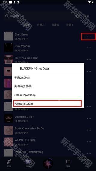 4、点击后方【...】并在打开的界面选择音质即可下载音乐