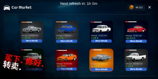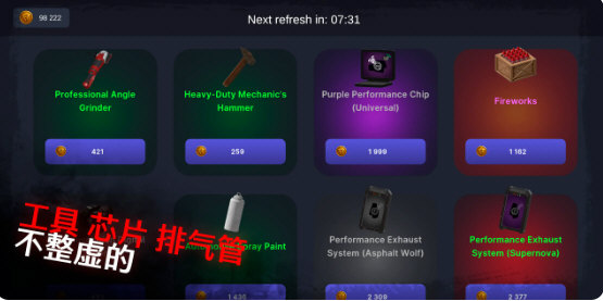 2、此外,废品市场提供了丰富的寻宝体验,玩家能够在这里找到稀有零件、工具和升级配件。