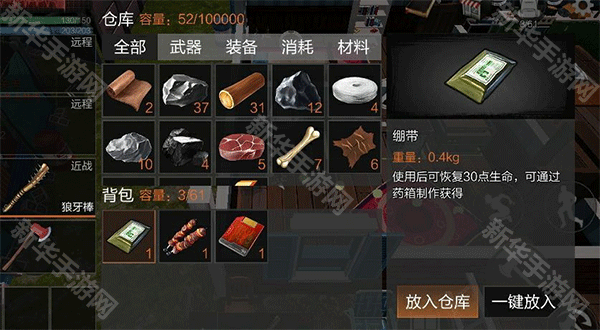 仓库:仓库的空间非常充足,玩家打开仓库时背包里面除功能性以外的材料都会自动放入仓库;