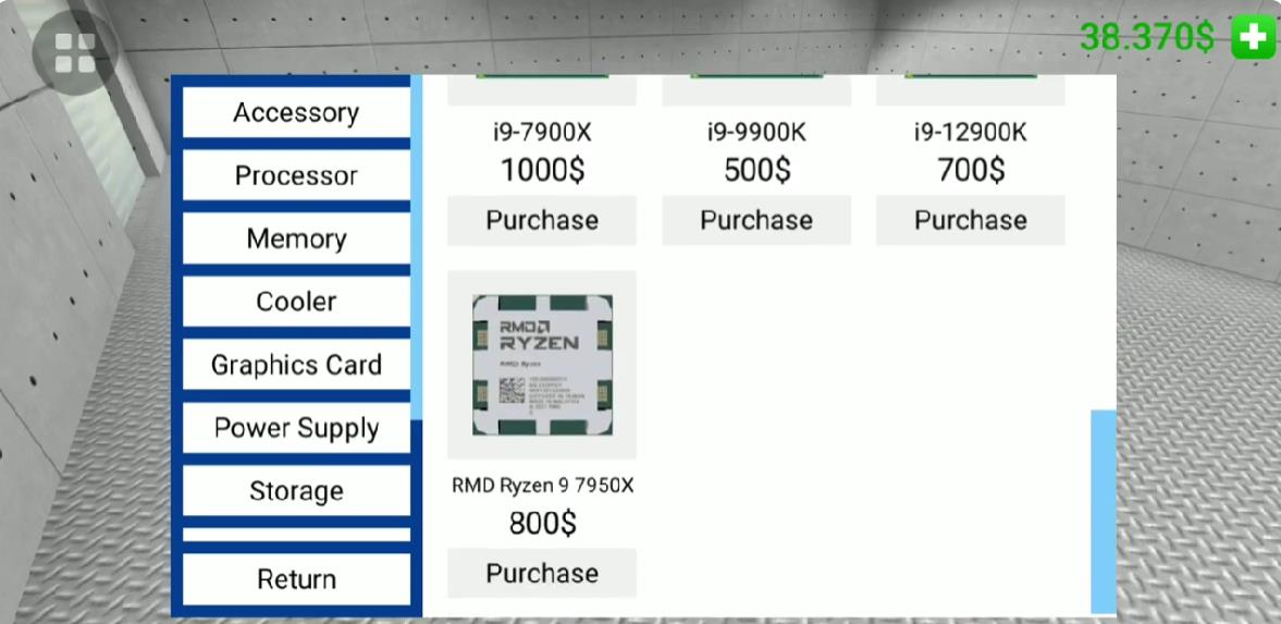 3、游戏的开始会给你一台空壳机箱,然后打开菜单,你就能选择想装上去的部件。