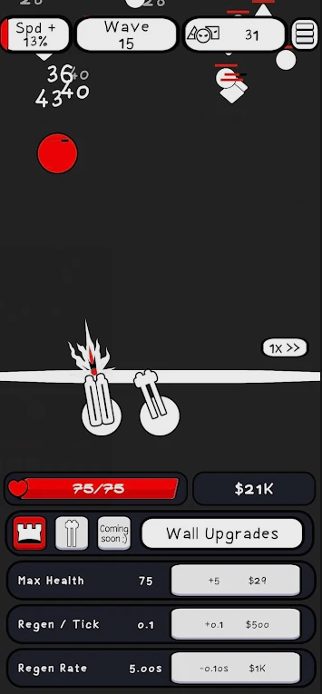 游戏的玩法很简单,而且让玩家能选择合适的炮塔进行升级组合,建立防御塔来攻击可怕的怪物,保证自己的城墙不被攻破,灵活的调整并且更换阵容来应对不同的敌人。