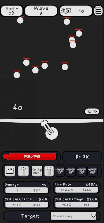 【红线放置前线】这是一款关卡塔防类型的游戏,游戏由“Beor Games”工作室出品,玩家需要在竖版的画面上打造自己的防御塔,抵御怪物的攻击,将敌人消灭干净之后即可通关。在后面的关卡中玩家需要选择高塔的升级路线,提升攻击范围或者攻击力,相互组合和搭配,才能更好的保护自己的城堡。是一款简单粗暴的塔防游戏,并且炮塔会自动攻击敌人,并且游戏没有广告,玩法更加清爽。