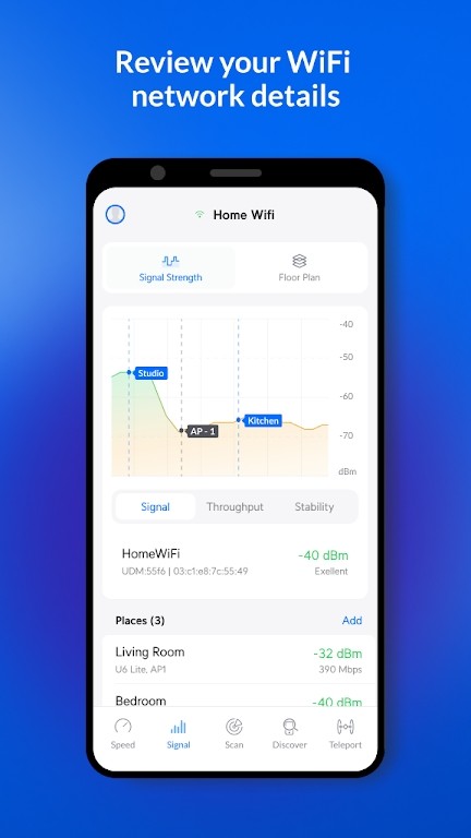《Ubiquiti WiFiman苹果版》有专门为ios苹果用户使用的苹果版本,有着非常强悍的网络检测功能,列出所有连接设备(包括MAC地址、IP地址及制造商信息),支持一键踢除异常设备。 测量上传/下载速度,并提供历史记录对比和分享功能,信道分析,检测周围频段占用情况,推荐最优信道以减少干扰,蓝牙检测,扫描附近蓝牙设备并评估连接质量还有很多的实用功能,快来下载吧!