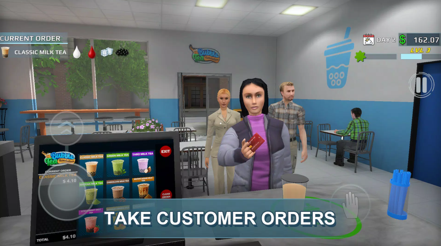 3、模拟真实的奶茶制作流程,你可以体验到接待顾客、经营、进货的丰富乐趣。