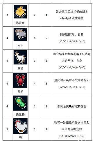 3.比如水獭能使一个随机伙伴购买时获得攻击和生命加成,野牛在特定条件下可提升自身属性。