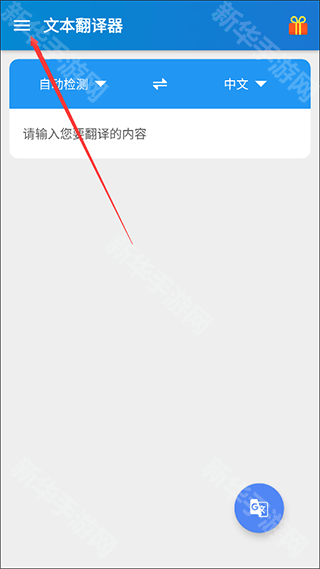 1、打开文本翻译器app后,点击页面左上角的图标;