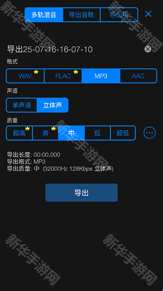 5、编辑完成后可一键导出各种音频格式和音频文件