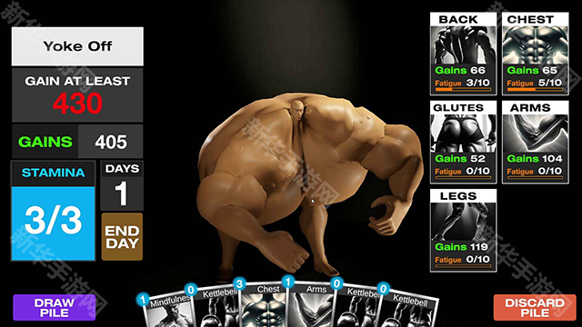 2.锻炼、塑造你的身体,赢得比赛。达到最低的 增肌值 (Gains) 以获胜。