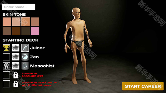 1、进入游戏后,选择一个角色,并为其命名。确认无误后,点击右下角的“start career”即可正式开始游戏。