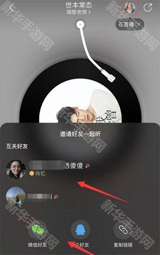 3、随后,在弹出的列表中有个一起听,点击“邀请好友”;