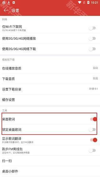 2、进入设置界面之后,选择打开”桌面歌词“后面的开关按钮,如下图所示;