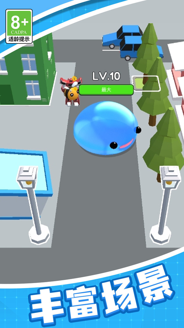 2、游戏巧妙地将吞噬玩法与物理引擎结合,史莱姆的弹性移动和被吞噬物体的物理反应都显得真实而有趣。