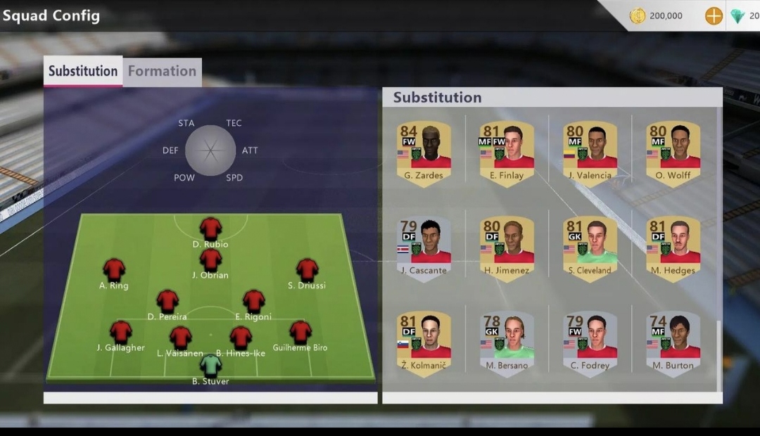 游戏的玩法非常有趣,让玩家参加各种比赛,获得世界杯,有非常强大的ai,让玩家每一场比赛都充满挑战性,并且训练自己的球员变得更强,每个球员都没有废卡。