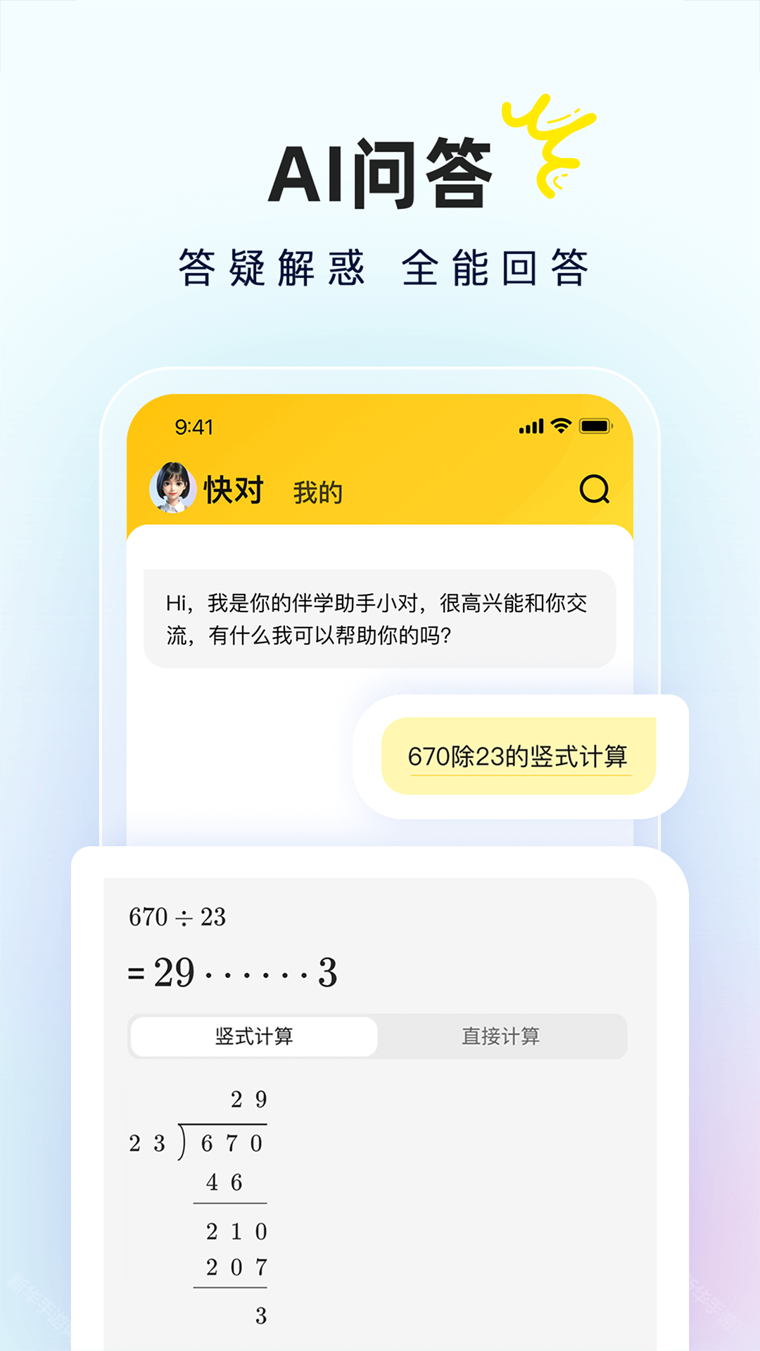 《快对作业官方正版》这款软件是一款非常优秀的作业扫描软件,这款软件专为中小学生打造,帮助家长和学生更好的写作业,学生写作业更加快捷高效,能够学到正确的答案,不再被难题困到,而家长则可以更好的辅导孩子学习,快对作业官方正版还有着非常优秀的ai系统,能够帮助学生学习,ai老师也能更好的对学生进行学习,如果你也被作业问题而困到,那就快来下载快对作业官方正版吧!
