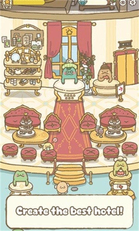 2、玩家可自由经营自己的青蛙酒店,只要持续操作,就能解锁更多房间。