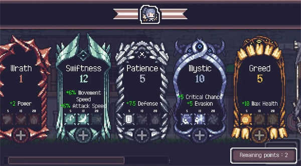 这款游戏融入了Roguelike元素的2D横版动作闯关游戏,玩家操控英雄深入一个个地牢关卡展开冒险,凭借灵活走位与骷髅、蝙蝠等各类怪物激战。游戏中有着丰富多样的武器装备可供自由解锁,战斗上采用传统RPG加点方式,击杀怪物获取经验值升级后可对属性加点,增强战斗力。