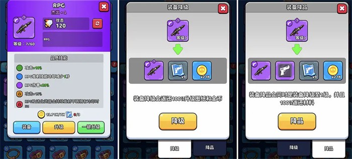 等级、品阶有就升都是可以无损降级的,有更好的装备只需要在原基础升阶就能把等级升的一样,白色、绿色、蓝色装备留着可以合成为紫色装备拿去当升阶材料