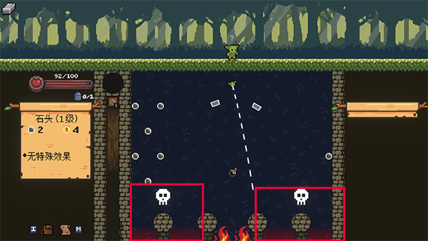 6、领取完奖励后,进入下一关的形式也是通过弹珠的形式,中间火炬无法穿越,且会扣除血量,我们需要选择左或右的入口进入