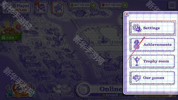 1、首先打开海战棋2中文版,我们需要通过或者跳过游戏的新手引导,然后在游戏的主界面点击右上角的菜单图标。