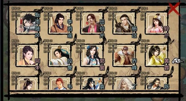 1.精致复古的游戏艺术风格,各种熟悉的武术人物等着你收集,自由组合,享受冒险之旅。