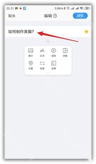 5、进入编辑页面后,输入文章标题。