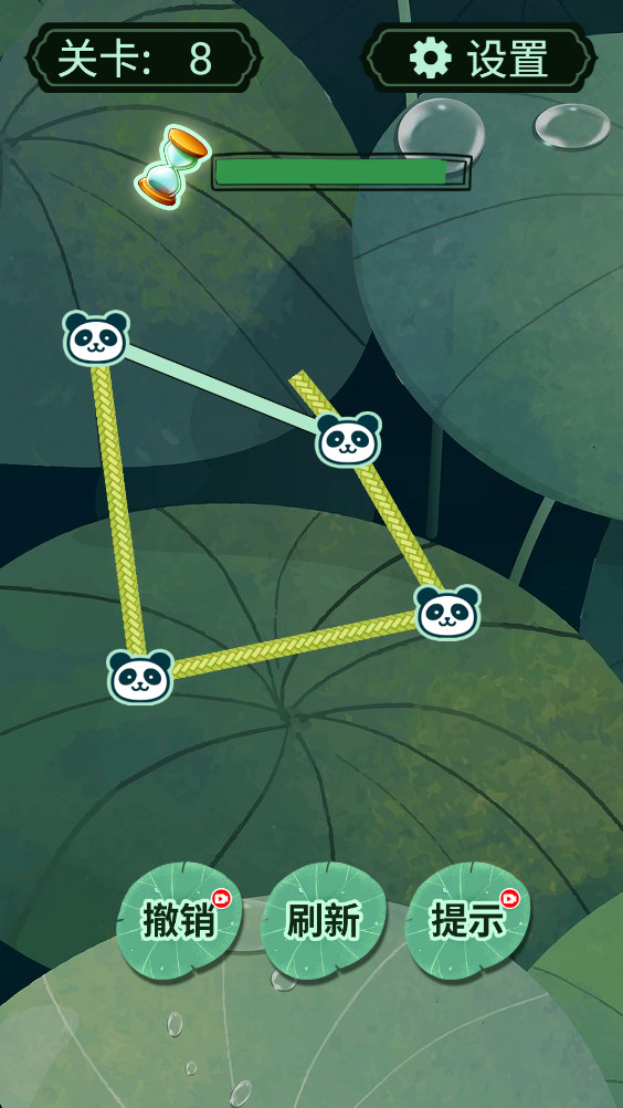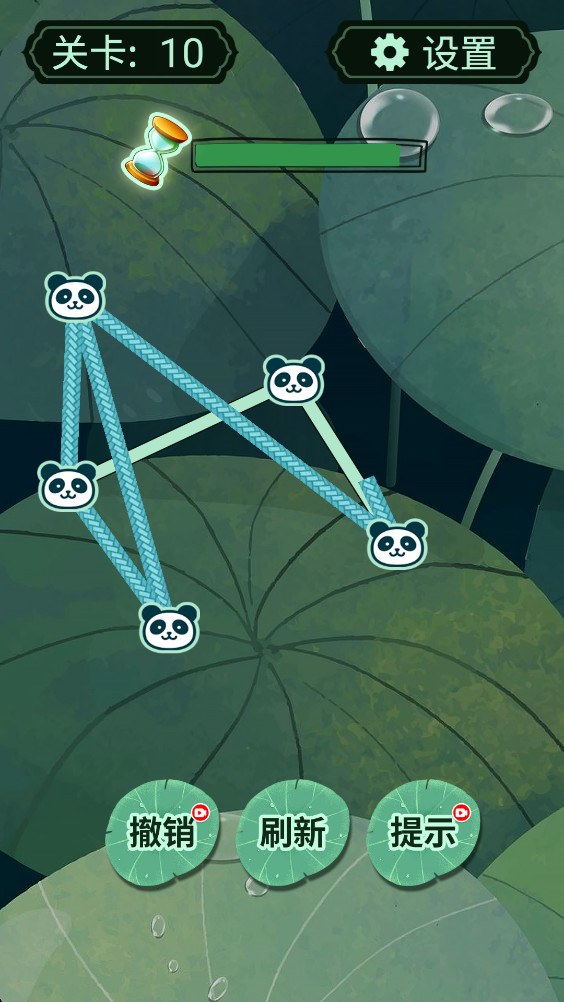 《一线大师》是一款充满创意的解谜闯关类手游,这款游戏有着经典的卡通游戏画面,让我那就爱逮到一个充满绿色色系的世界中,在这里,玩家需要在每个关卡中磷火移动线条,把熊猫标签连接起来,进行合理的组合,逐步完成连线任务,每一个关卡都有不同的难度,这种画线玩法很有意思,玩家可以轻松熟悉所有操作,提前规划好线条布局,玩起来很考验玩家的思考能力。