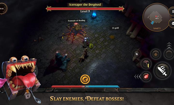 5、进入地牢和各种怪物战斗,击败这些怪物获得强力装备提升自己的实力,不断挑战一层层的怪物来体验新的冒险乐趣。