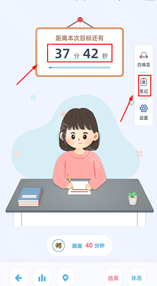 5、之后就会进入学习倒计时,学习完成后,还可对这次的学习进行总结。