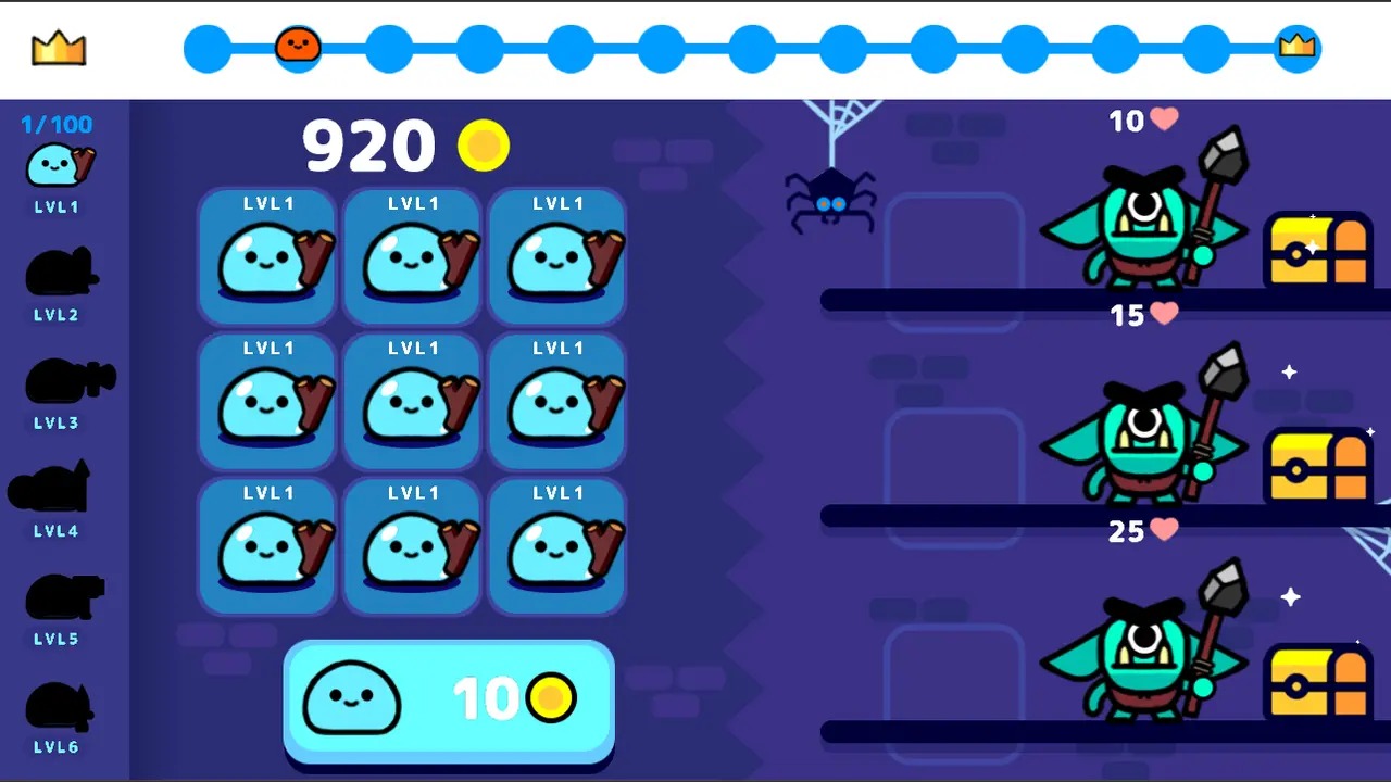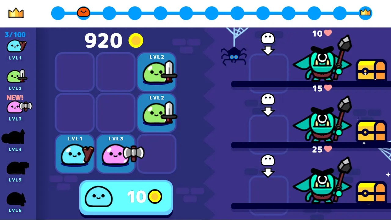 游戏的玩法非常简单,而且游戏内容也很轻松,只要不断合成就能解锁新的史莱姆,让玩家体验不一样的游戏体验,喜欢的快来试试看吧。