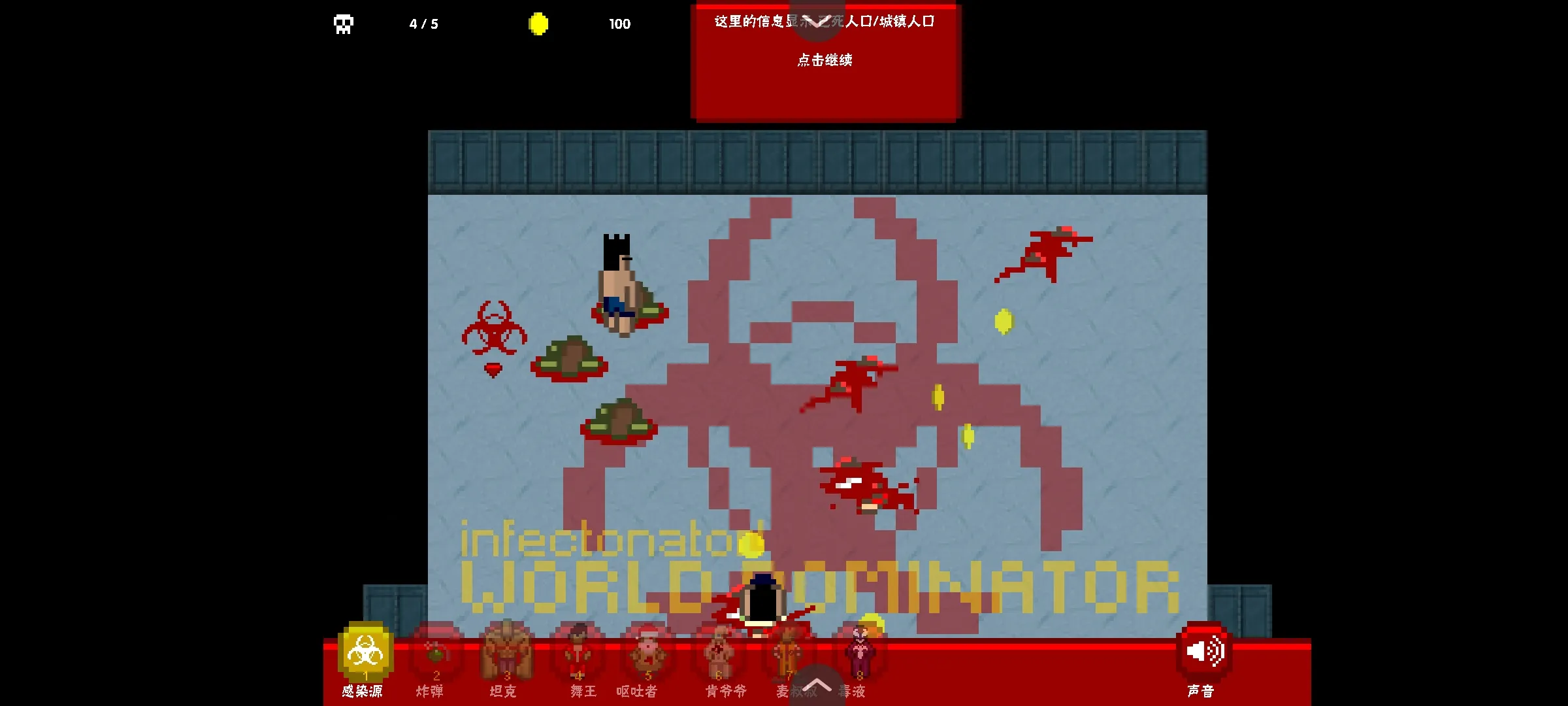 【世界传染恐慌中文版】是一款由国外人气flash冒险游戏《传染恐慌2》的续作,作为一款策略类冒险手游,我们在游戏中将扮演在末日世界里陷入疯狂的科学家,想要利用自己开发的僵尸病毒来征服全世界。世界传染恐慌中文版相比前作进行了全面的、系统的升级,有了更多的可利用的道具和可解锁的僵尸,这些特殊功能都可以帮我们更快地把病毒传染全世界,游戏采用复古经典的像素风格,为我们带来一场充满趣味的体验。