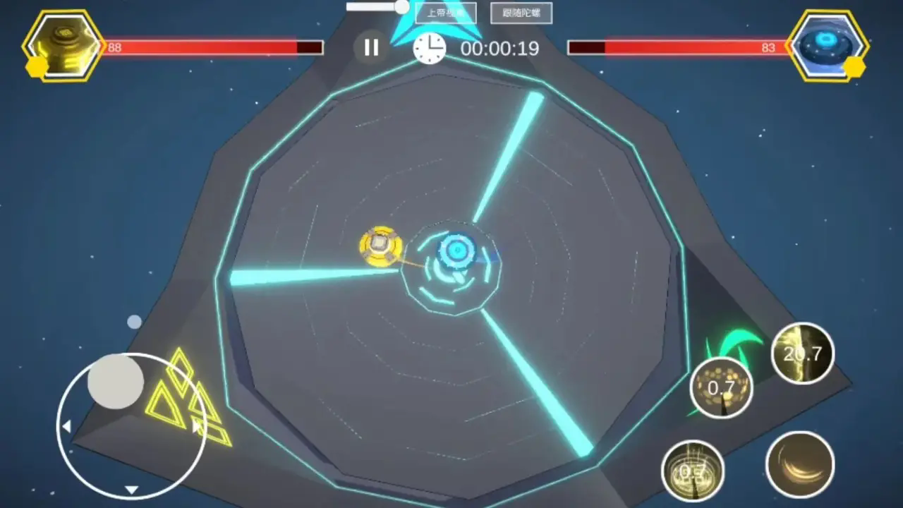游戏的玩法非常的有趣,玩家能选择不同的陀螺来进行战斗,只有战胜最后一个陀螺才能获得游戏的胜利,并且可以选择不同的模式,喜欢这款游戏的绝对不能错过。