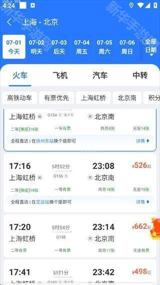 3、智能推荐火车中转,多种出行方案选择,满足您的出行需求;