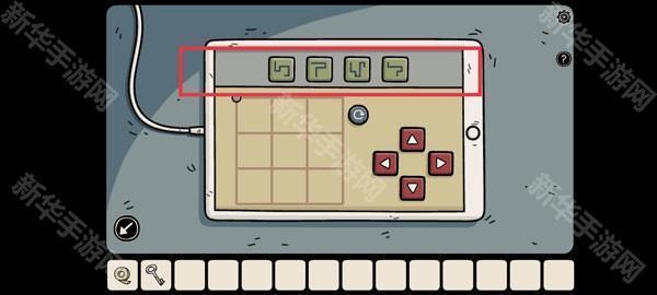 返回一楼将数据线插入平板设备,按照提示纸上的指引依次点击方向键,获取四个「符号密码」。