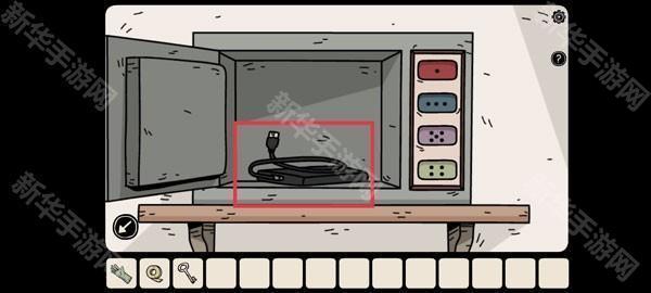 从相框后方取得「生锈钥匙」,前往二楼右侧房间获取「数据线」、「胶带」以及一张有用的「提示纸条」。