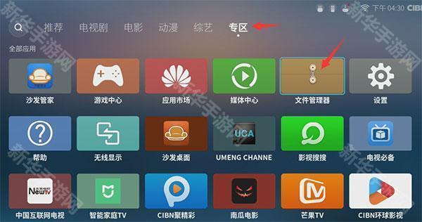 2、进入电视盒子”专区“选项,打开”文件管理器“;