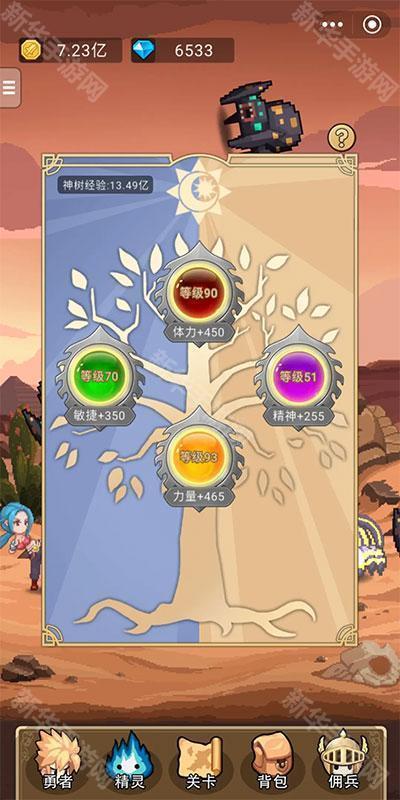 当你开启神树后,恭喜你,你的苦日子来临了,你会发现这玩意是个无底洞,压根填不满,所以前期需要针对性的去升级神树(也就是大家说的砍树),一般建议力、体互点,其次是敏、最后才是精神,我一般是4:4:1:1,后期可以多点一下体、敏。(有专门统计过的Excel表,但是太长了就不放出来了)