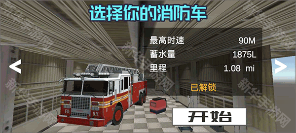 1、下载安装好模拟驾驶消防车手机版,进入游戏你可以选择一辆消防车进入游戏,前期只有一辆消防车可供选择,你需要完成游戏任务来获取游戏金币,才能解锁其他车辆。