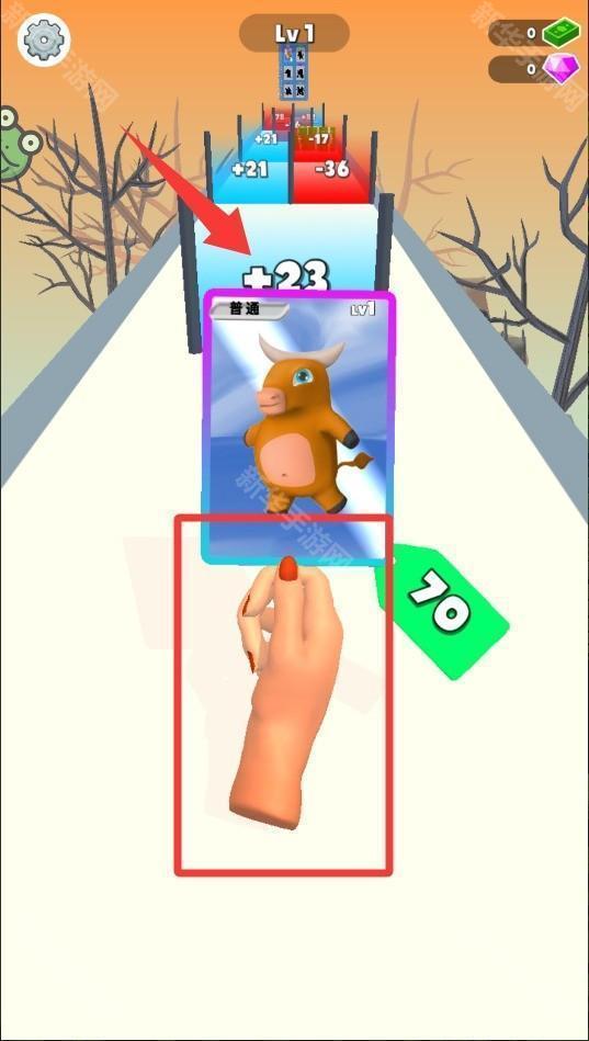 1、进入游戏后通过左右滑动屏幕控制角色移动,注意避开沿途障碍物,同时收集场上的增益道具提升战斗能力。