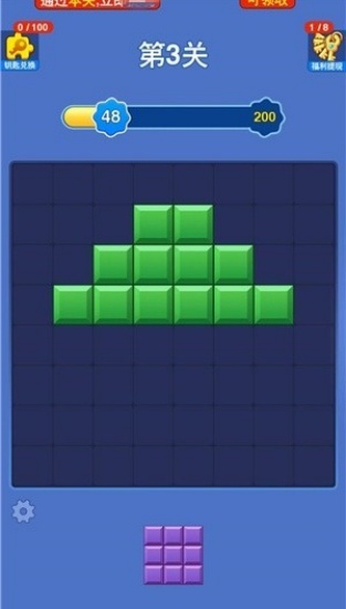 1、非常简单易上手的规则,只需放置各种不同形状的方块就能轻松消除过关,红包也能很容易拿到手!