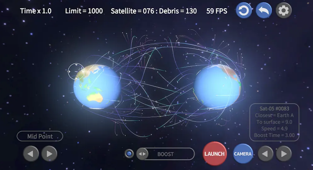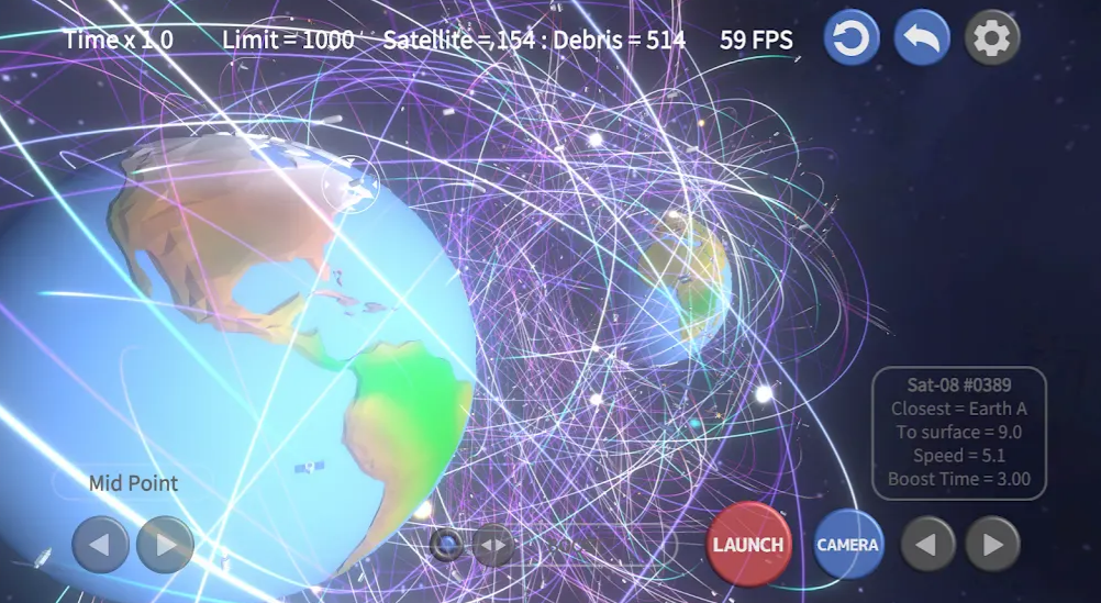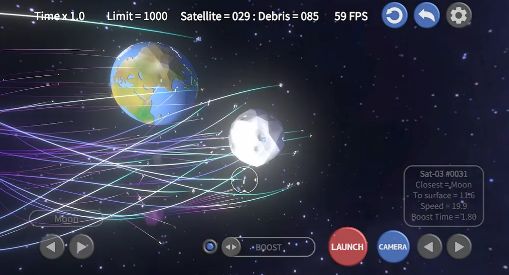 2、支持行星视角与卫星视角自由切换,从宏观星系到近地轨道一览无余,帮助玩家精准预判碎片运动路径。