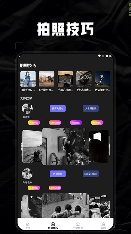 2.在平台上面有着非常多的拍照功能,用户们可以一键进行拍照,这里拍出的照片十分好看,而且还能在线进行修图,还提供了非常多的拍照技巧来供用户们学习使用