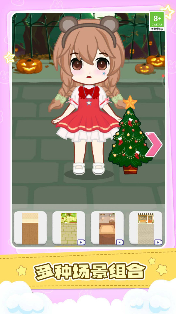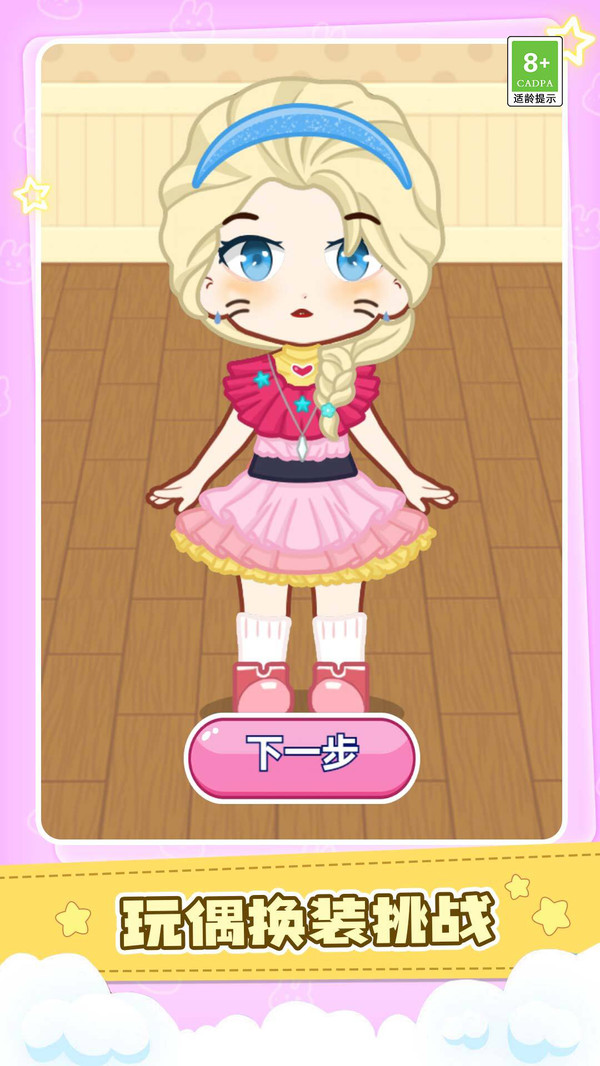 你将为软萌角色自由搭配日常风、华丽风、节日风等百种造型,从发型到配饰随便组合,每关还有主题要求考验你的时尚敏锐度!3D卡通画风软萌到心化,操作简单到点击拖拽就能完成搭配;评分机制超有挑战性,高分能解锁稀有服饰和新角色,越玩越上瘾!