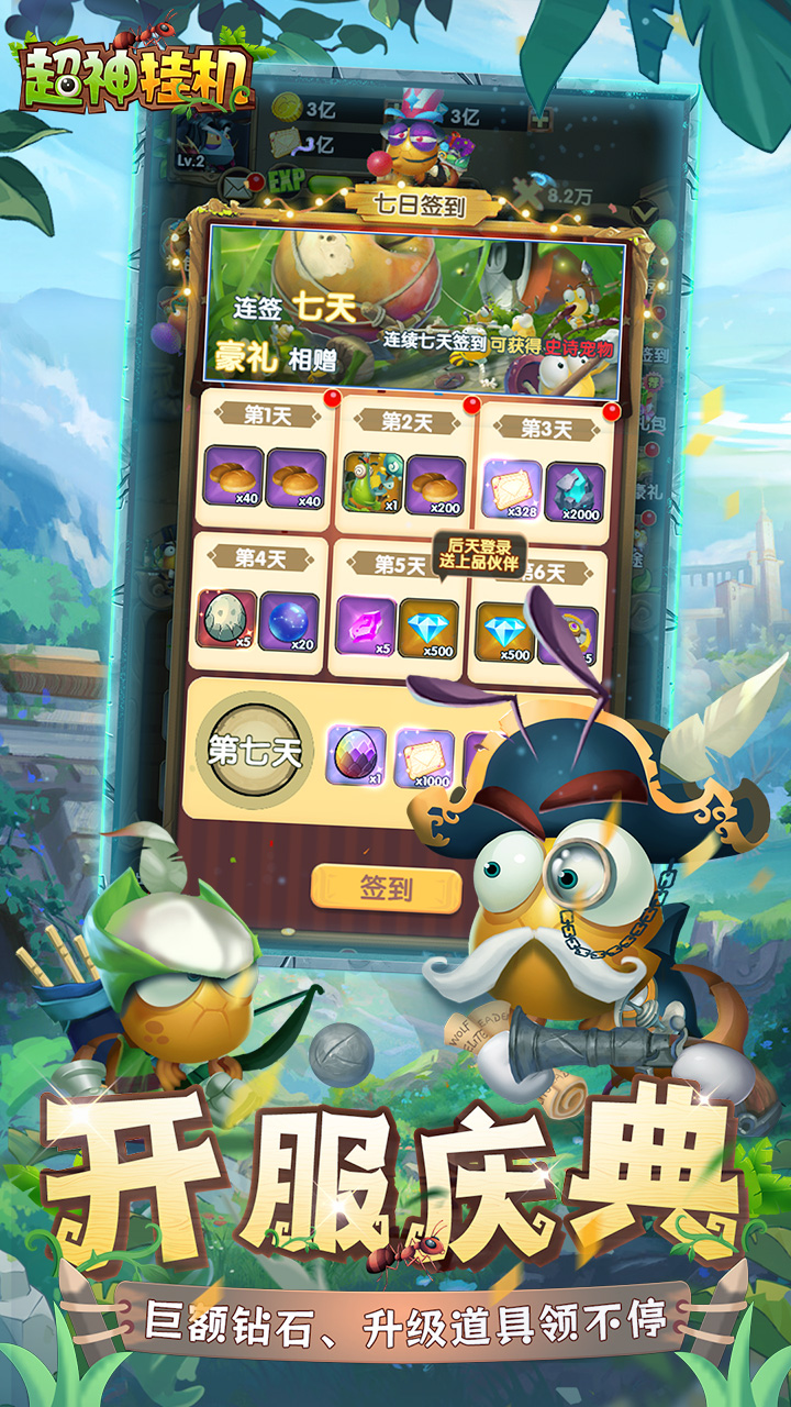 【超神挂机(0.05折资源狂送版)】是一款角色扮演类型的游戏,这款游戏为0.05折扣服,在蚂蚁的世界中成为最终的胜利者,一开始,玩家将在世界中扮演一只弱小的蚂蚁。通过自己的努力,他们将创造文物,召唤宠物,抵抗敌人,让自己的蚂蚁成为最终的赢家。游戏没有职业限制,每一只蚂蚁都是你的战士,挂机收集资源,并有能力选择自己的升级方法,使自己的蚂蚁队越来越强大,喜欢的快来试试吧。