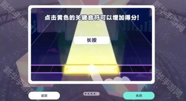 游戏内还有除了普通音符外的关键加分音符,点击黄色关键音符可以额外加分。